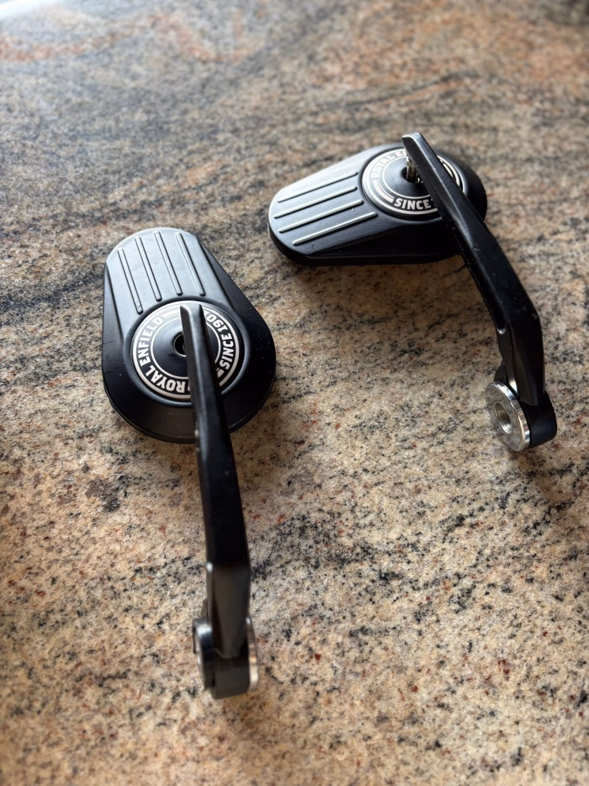 The subtle, elongated oval shape of the RE model softens the look of your handlebars while providing a crisp, vibration-damped view of the road behind you. Mounted at the bar ends, it gets your mirrors out of your peripheral vision and adds width to your bike’s silhouette.